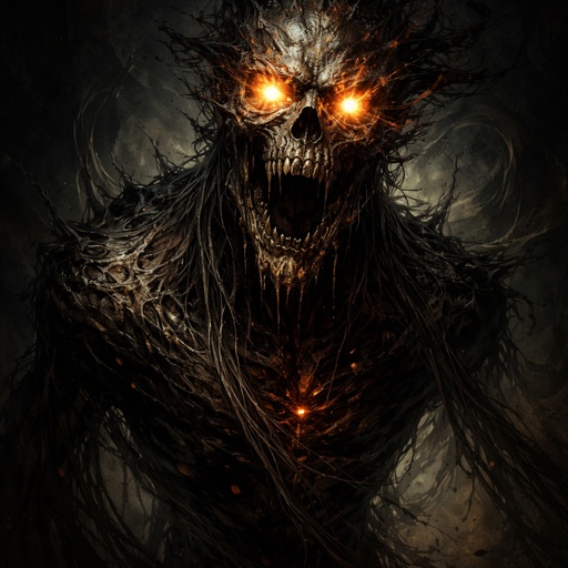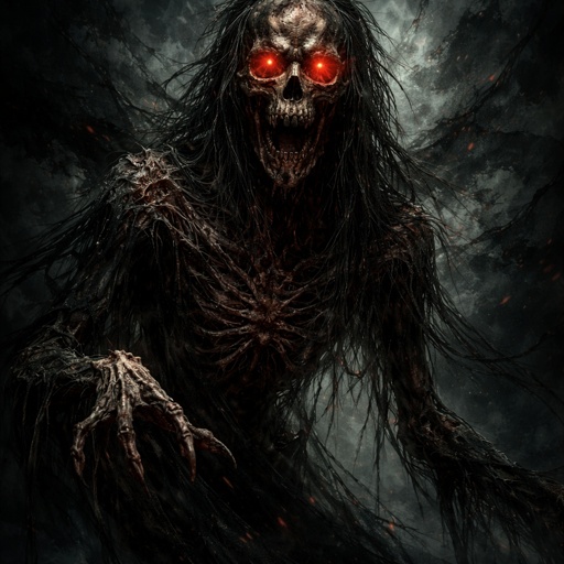 Male ghost , twisted and grotesque form,eyes burning with the same malice that defined his life and a skull for a head. ...
