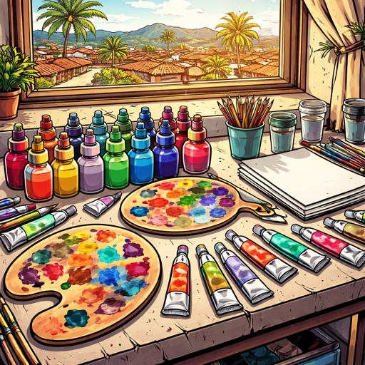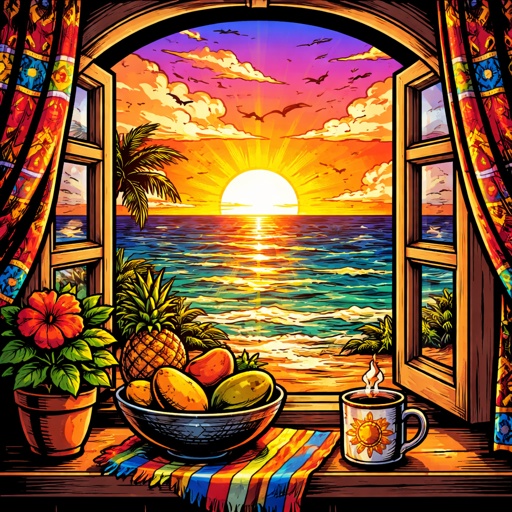 South American setting palm trees, huge villa in background mountains ocean we’re standing beside an ornate magnificent ...