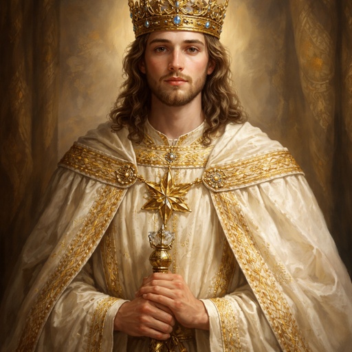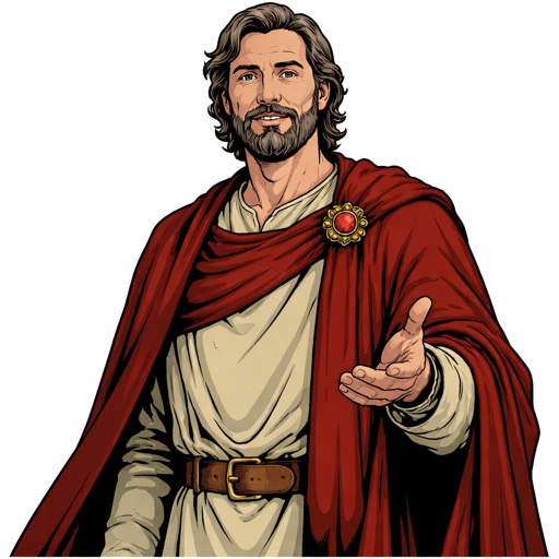 Realistic, refined, not dramatic very calm, full body shot white background, no speech bubble, a tall man with a robe hi...