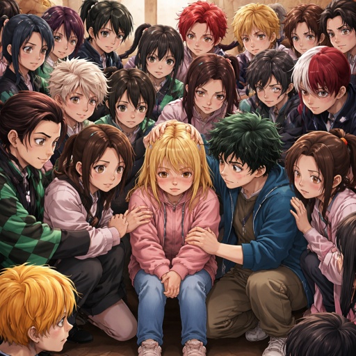 All the demon slayers and all of class one A comforting a sad 12 year old blonde girl