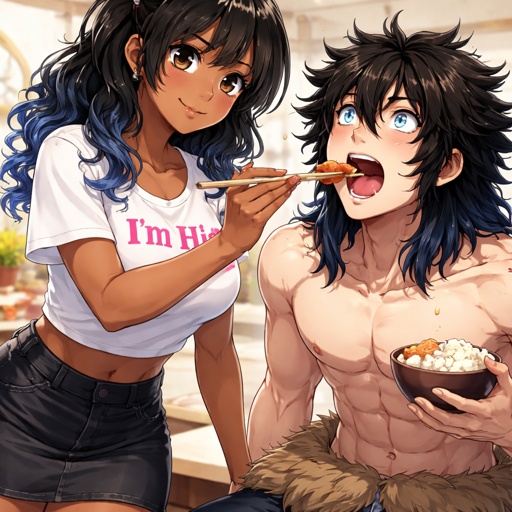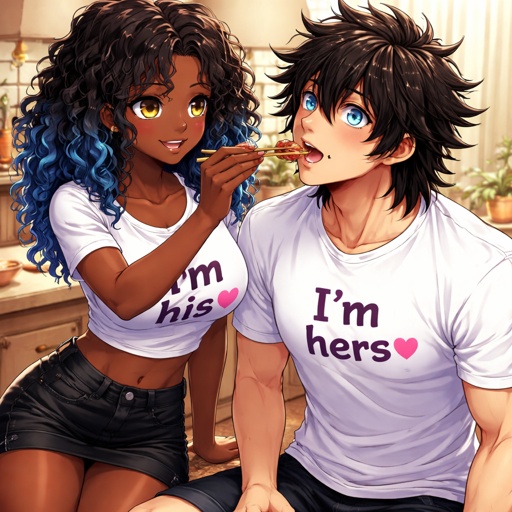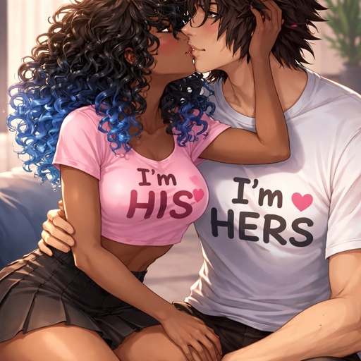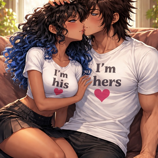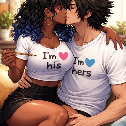 Adult girl with a dark ponytail kissing Bakugou katsuki