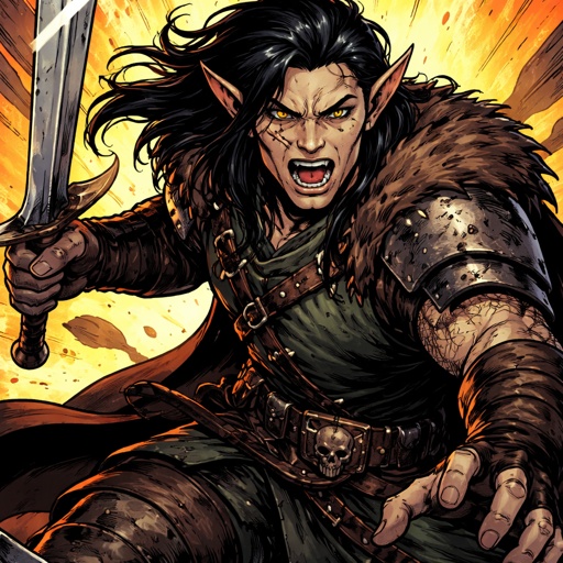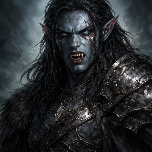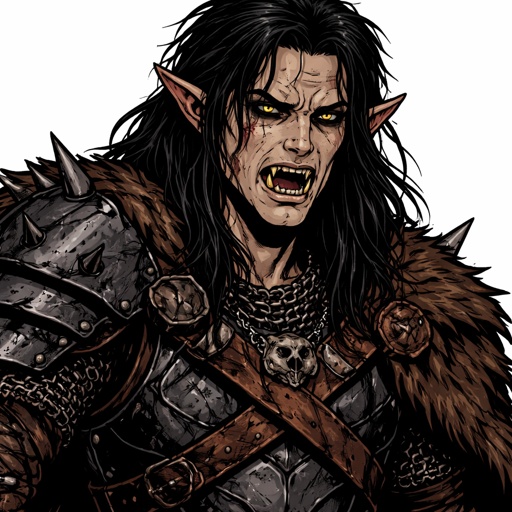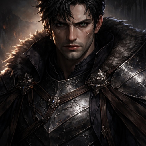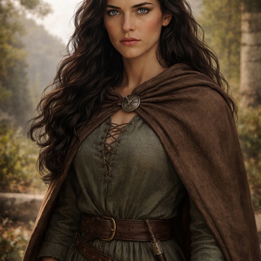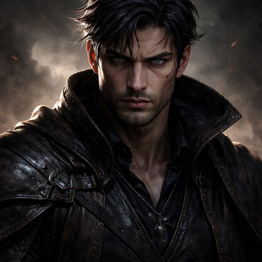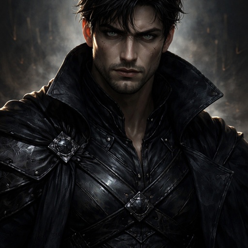 Realistic, refined . A mystic seen in three-quarter view from the left. The background is black. There are no speech bub...
