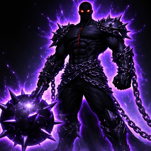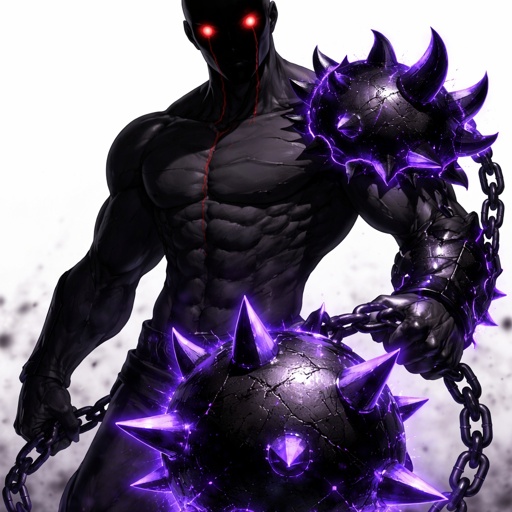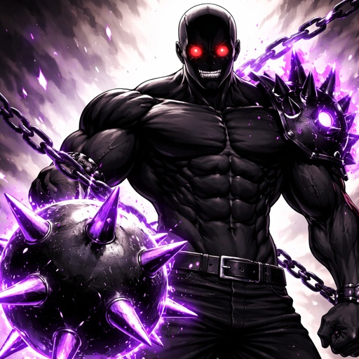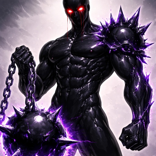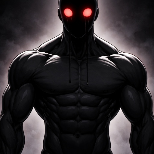 Buff, guy, pure black like the void looking like a smooth texture like marble but with no shine ,pure red circle eyes wi...