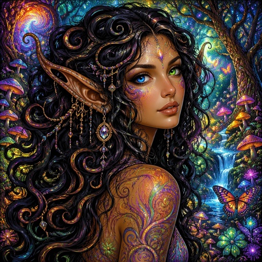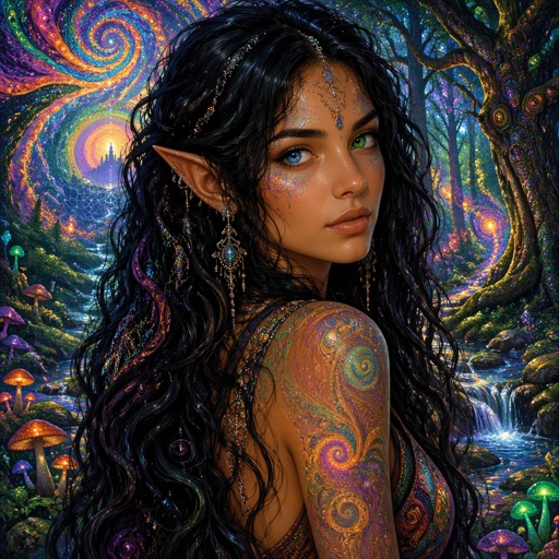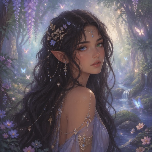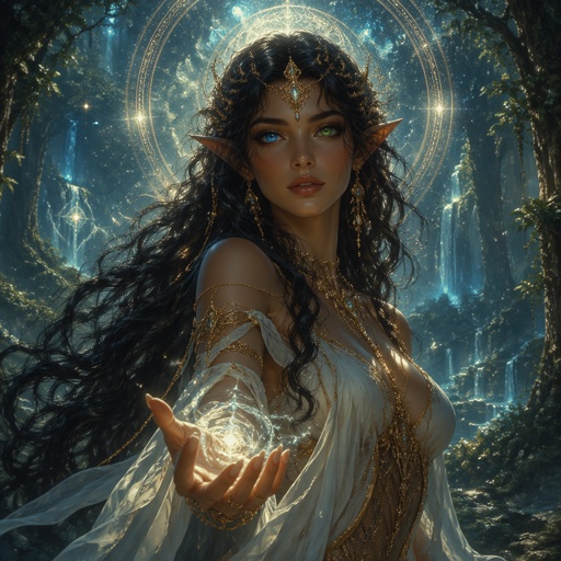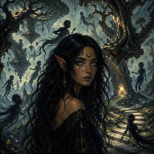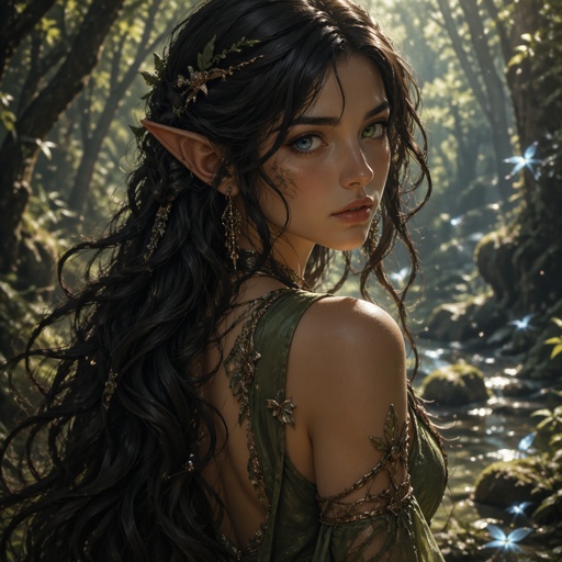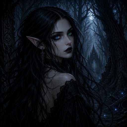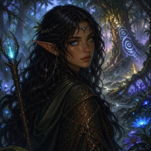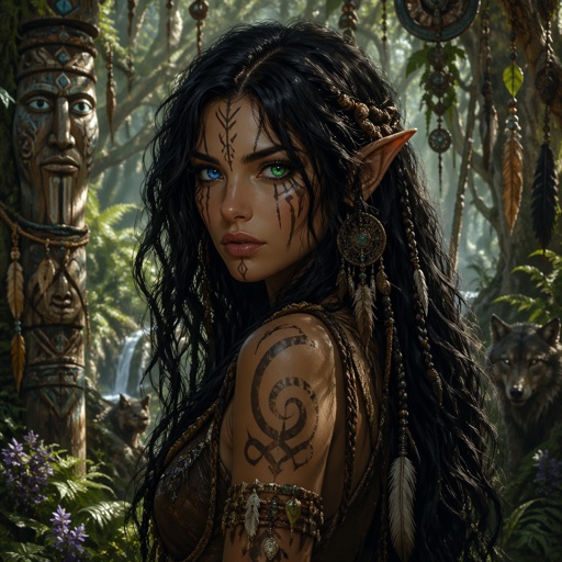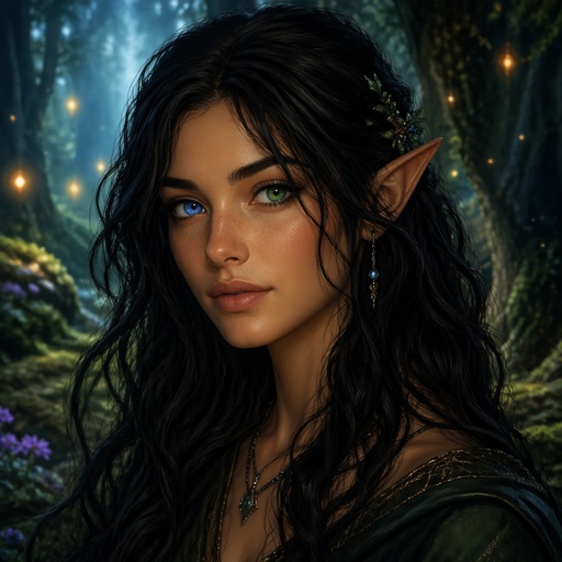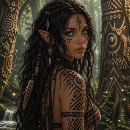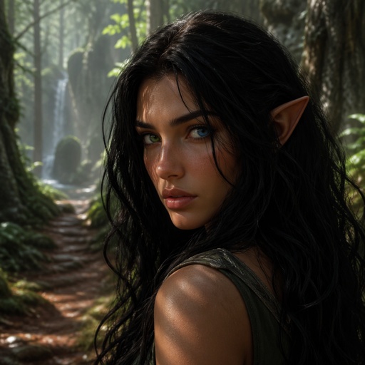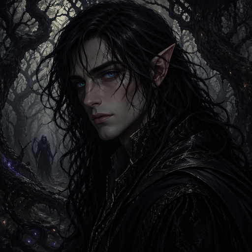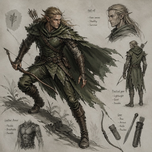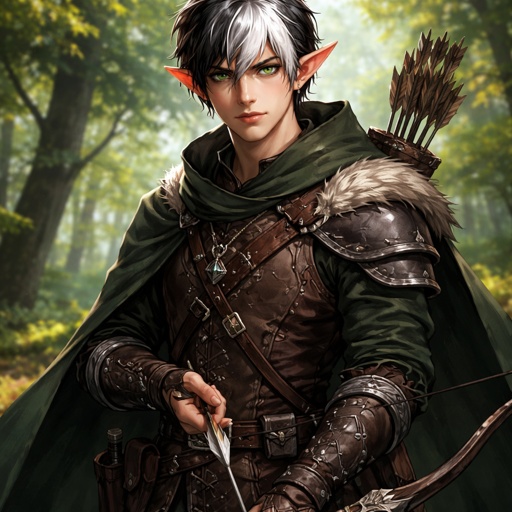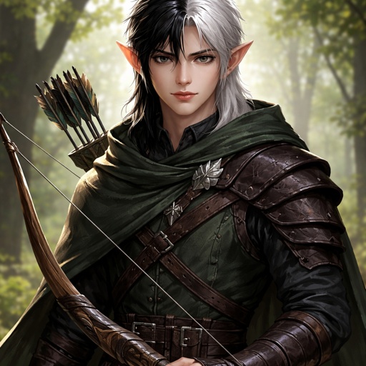Elf ranger male medium size half black half white hair 22 years old black colored eyes