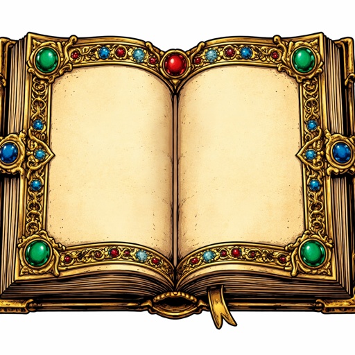 Ornate jewelled book in the Renaissance style it is open no illustrations and no text in the book