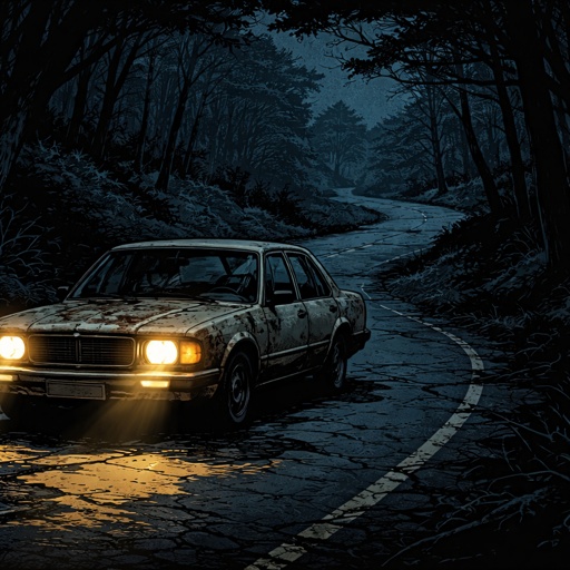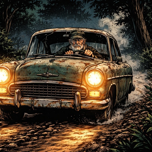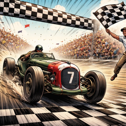 16 x 9 proportion. Refined realistic, no caricature an old-fashioned racing car crosses the finish line going toward the...