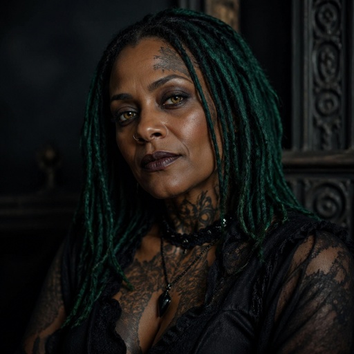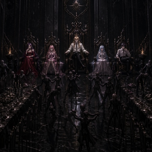 An 18 year old prince who has black hair with purple stripes and blue eyes. He is wearing all black and a black cape. He...
