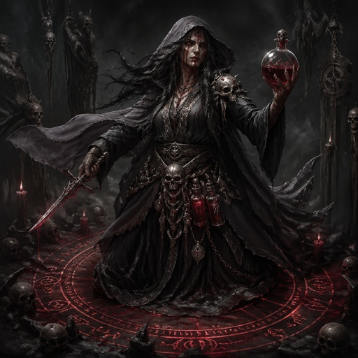 Nekromanta w ciemnej pelerynie i fioletowej szacie