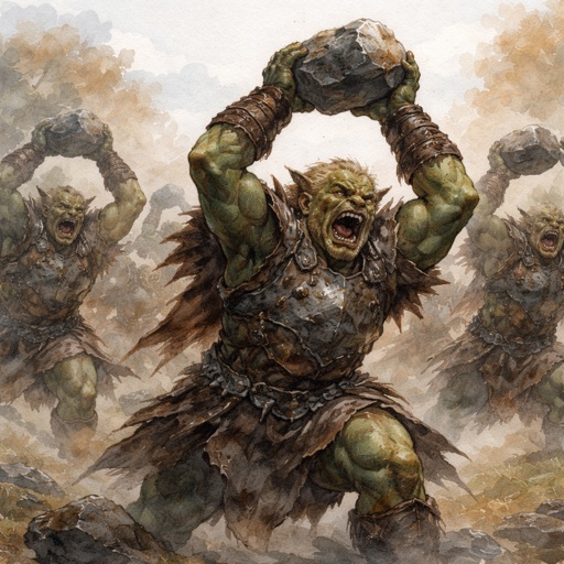 A group of orc rock throwers in an army