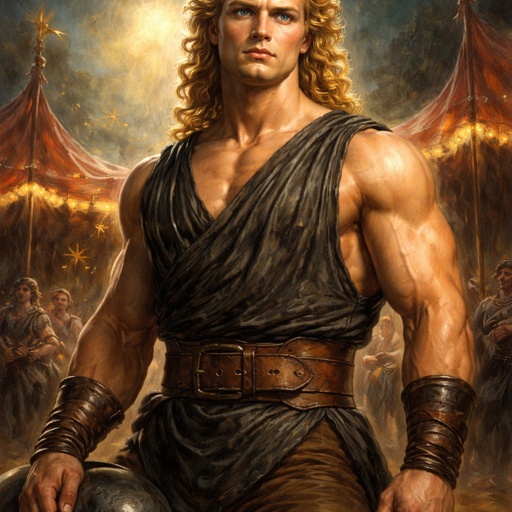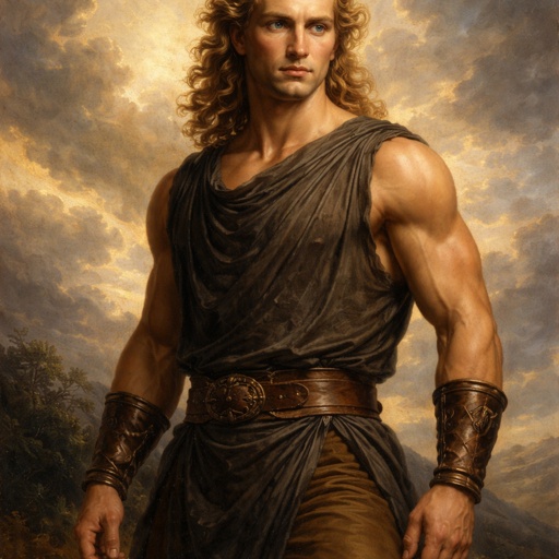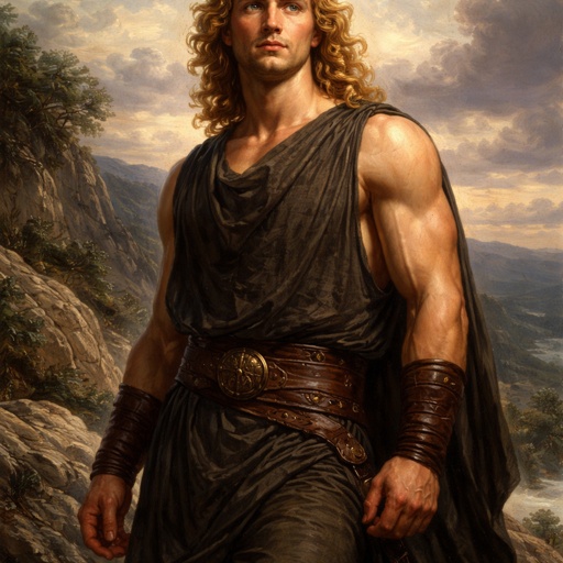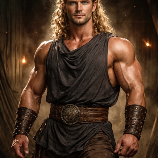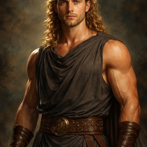 A tall well~proportioned male, so handsome he looks like a Greek god with muscles. With deep-set blue eyes and strong br...
