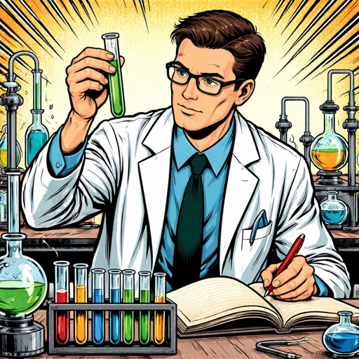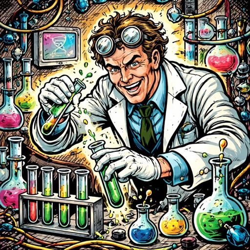 A mad scientist in his lab with test tubes and other weird paraphernalia