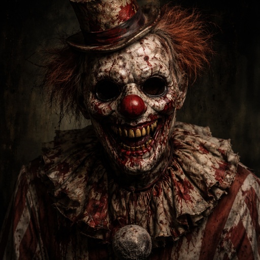 A nineteen thirtyโs style six foot three inch tall clown with a tiny top hat and a bow tie around his neck