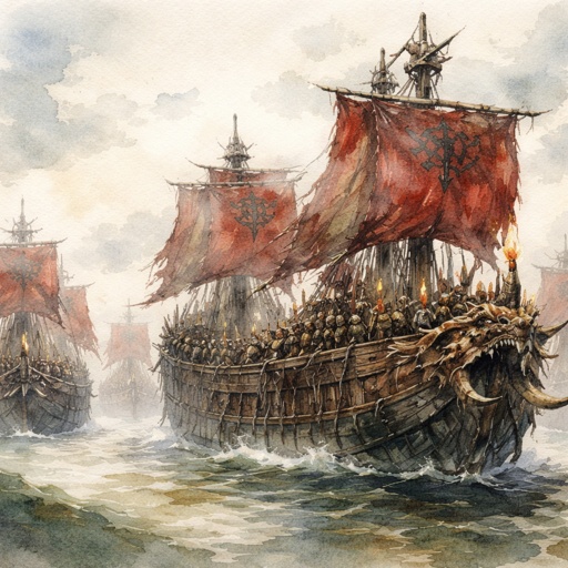 A group of orc ships in an army