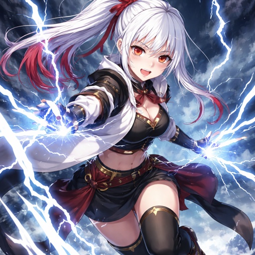 Cinder Fall in a lacy wedding dress, stockings, and high heels. And she is wielding a katana