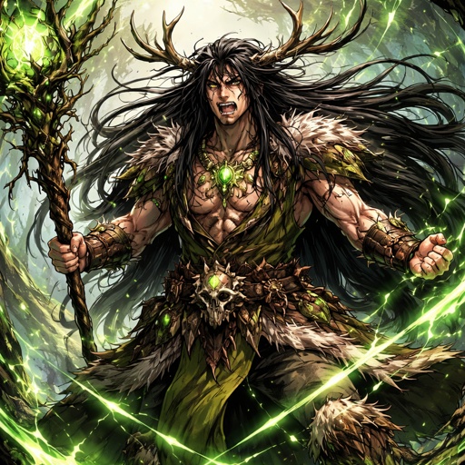 Long black haired Druid 6’11” raging out