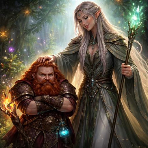 Realistic, refined not exaggerated, not cartoon like. A mystic seen in three-quarter view from the left. The background ...