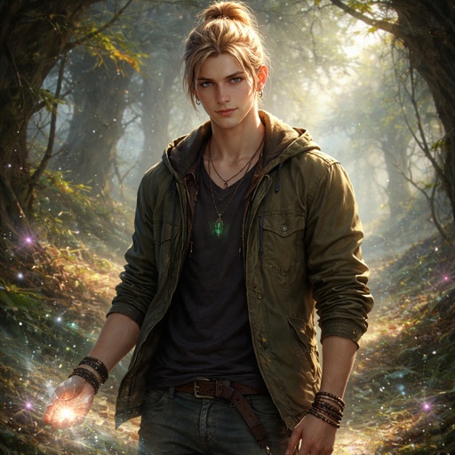 Realistic, refined a shaman dressed like a strange priest we see him in three-quarter view from the left. The background...