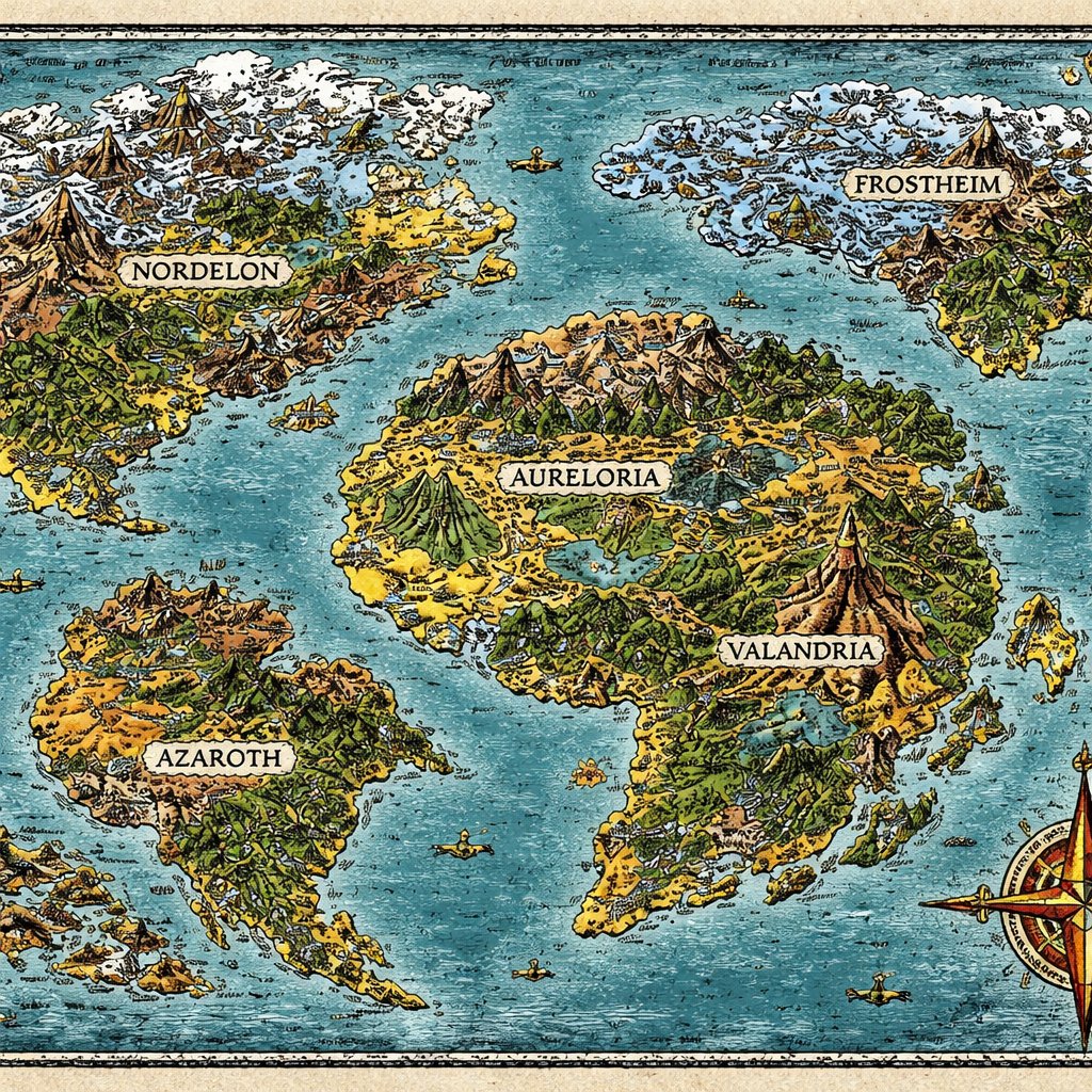 Realistic refined a large map of imaginary continents- mercator style