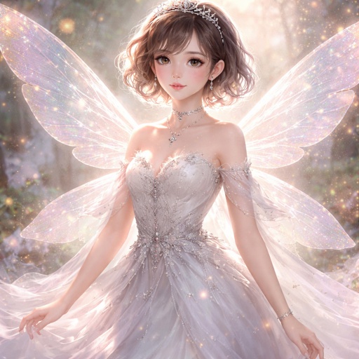 A. Princess with short brown and white hair with wings in a dress