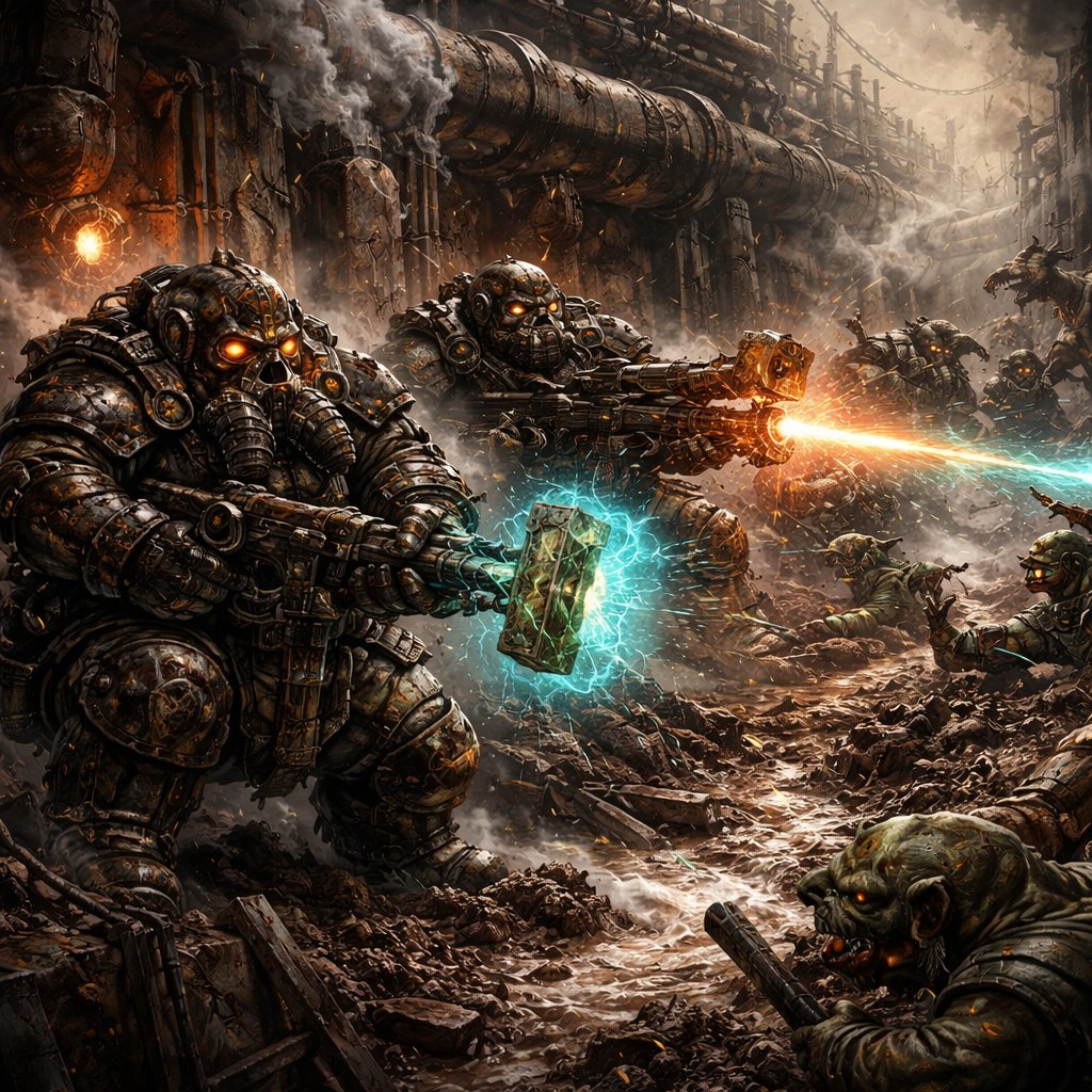 Dwarves fighting goblins in a trench