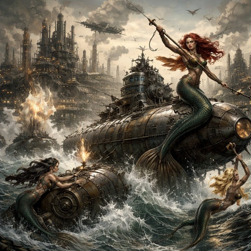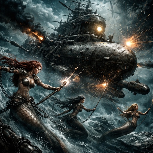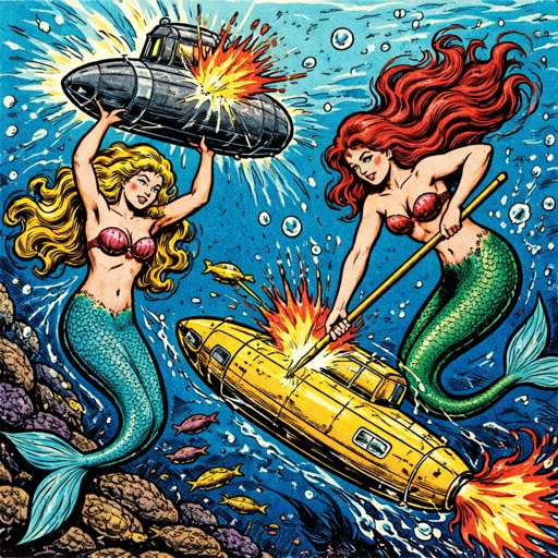 Mermaids fighting submarines