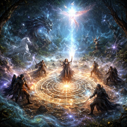 Celestial being made of constellations and nebulae, flowing cosmic robes, eyes like supernovas, surrounded by swirling g...