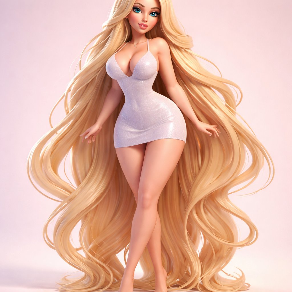 Hourglass shape and blonde hair down to her feet