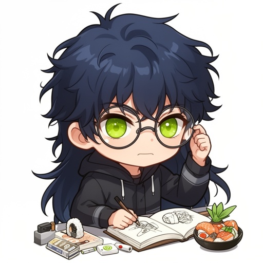 My description: I’m only 20 years old boy and I have these light lime green eyes, messy long darkish blue hair, long gla...