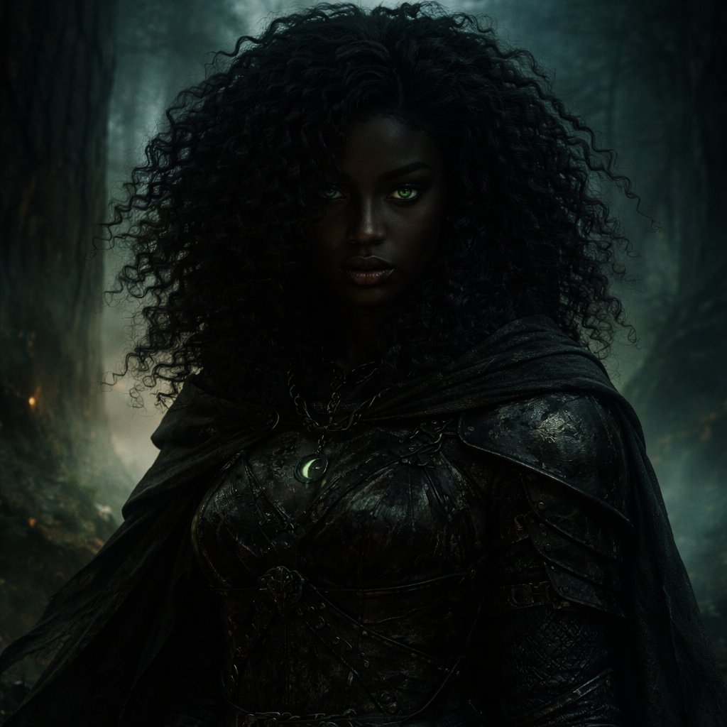 Black female with curly , hazel green eyes and a curvy figure who's a water bender