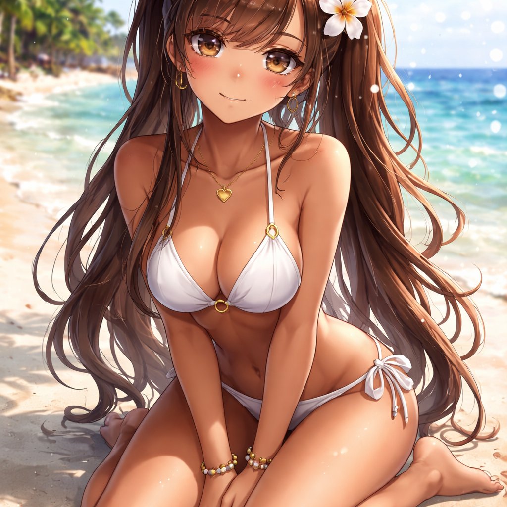 Beautiful girl in swim suit brown skin, curly black hair, full body pic