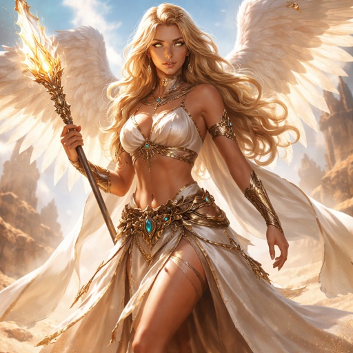 A late 20’s-early 30’s Aasimar with pale gold eyes and hair of the same color. Deep tanned/bronzed skin. 5’7” with an ac...