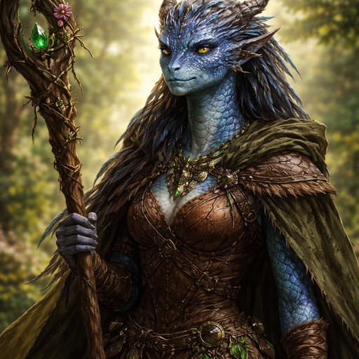 Dungeons and dragons alchemist female with green skin and bright blue hair, female with blue hair, female with green ski...