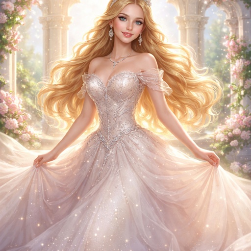 A rebellious but kind teen Princess in a red dress with dark red hair
