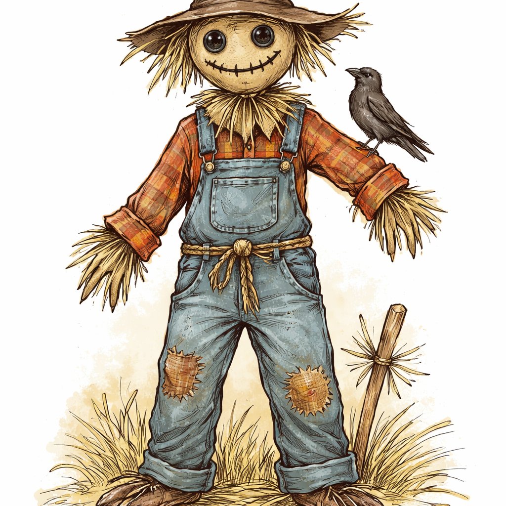 A scarecrow. More friendly looking outfit,but looks scary. The Outfit was a costume for a play. So it’s colourful but not too colourful. Wears Bib and Braces overall that