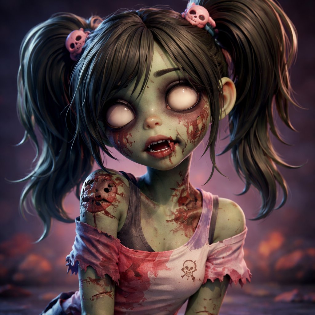 Hollow One Zombie Girl Black Hair with a Shock of White. She wears a Lavender strapless skin tight mini dress. With a da...
