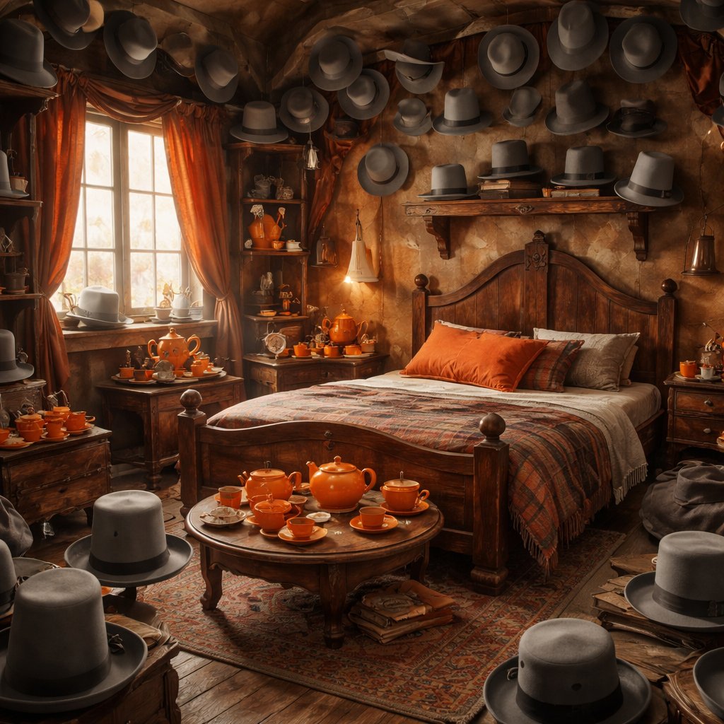 A balcony off a red bedroom next to it, a heart shaped blossom tree