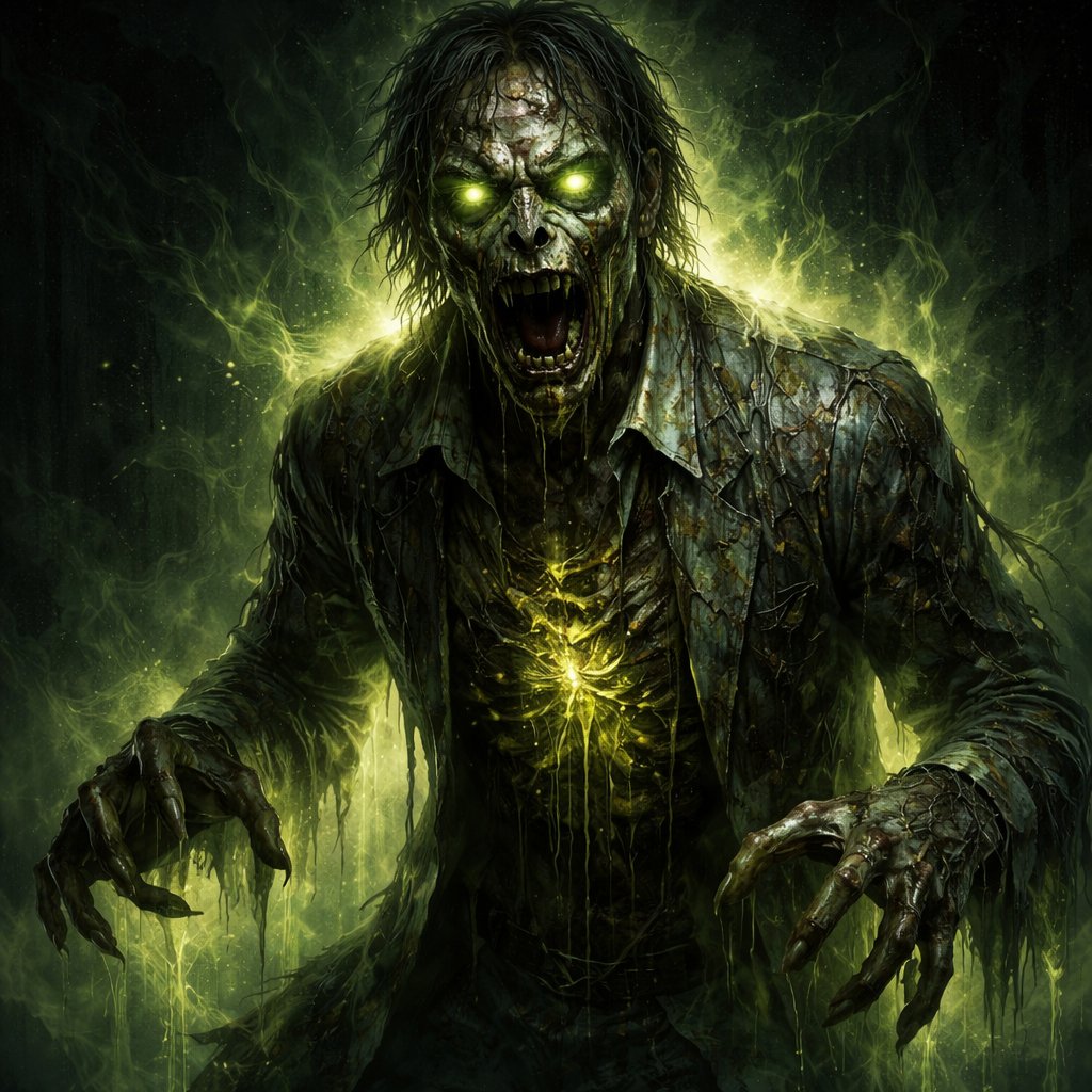 Male ghost grotesque glowing with malice that defined his life