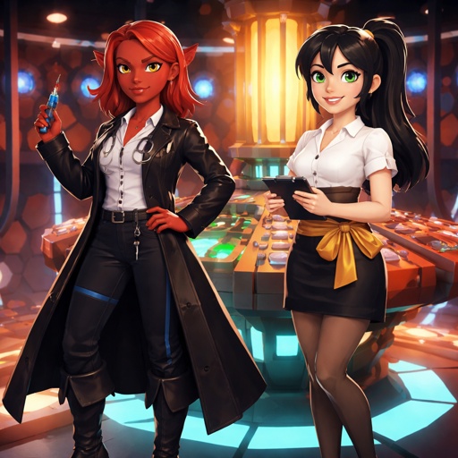 The doctor female red hair white skin black leather coat alien looking not something you would find in earth with red ta...
