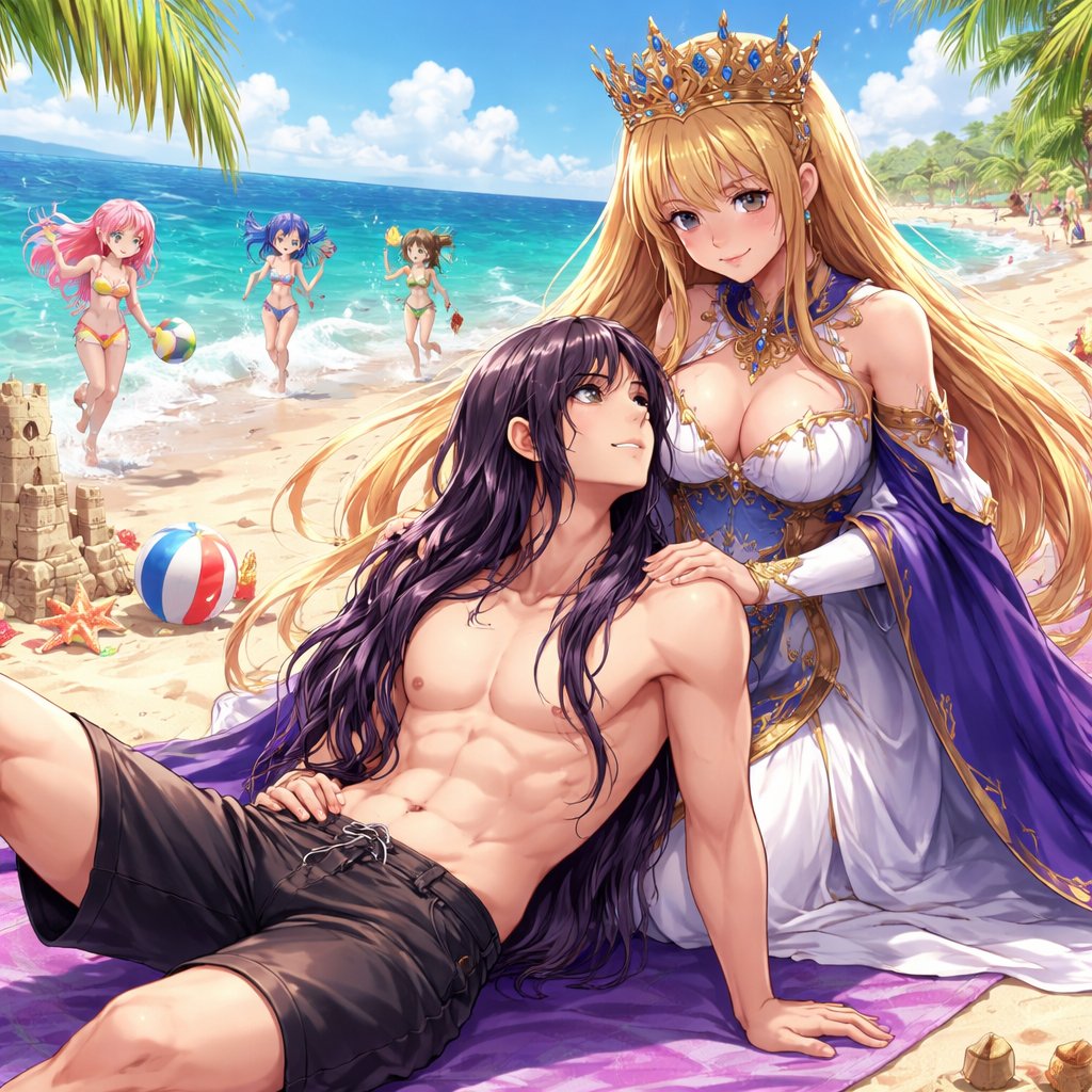 A anime boy with blonde hair and a anime girl with brown hair on top of him