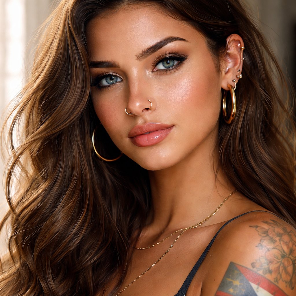 A beautiful light skin Puerto Rican, Latina woman who is loyal with nose ring and pericings and blue eyes