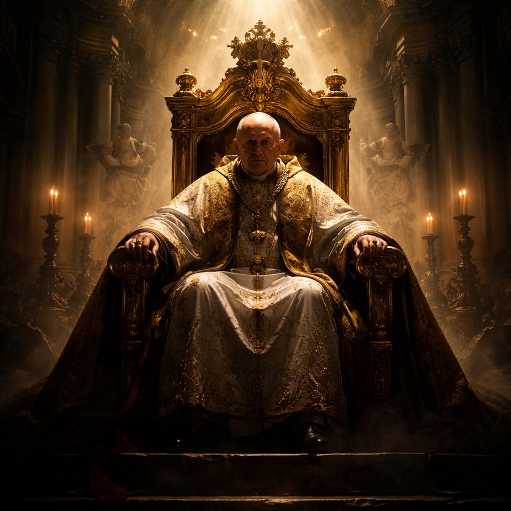 Old man bold , vatican throne , sitting , in st paul church