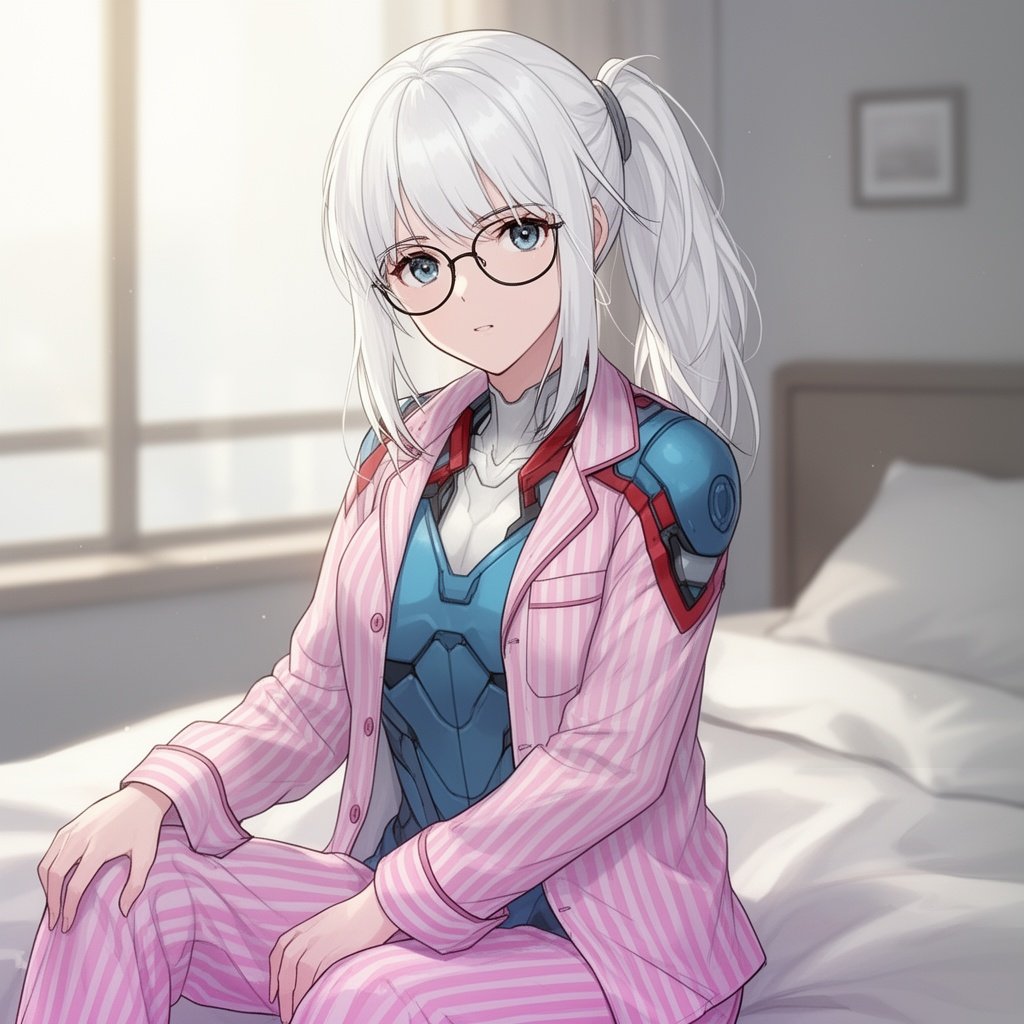 Blonde hair White girl 21 years old super suit under pajamas with glasses