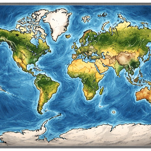 Realistic refined a large map of imaginary continents- mercator style on a large table. Several men in renaissance style...
