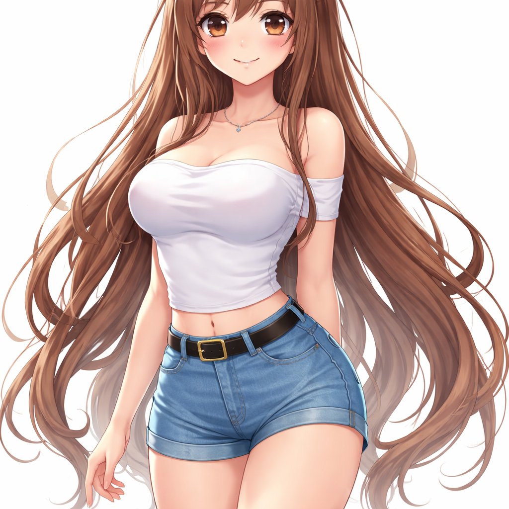 Cute girl long hair tight clothes full body simple standing pose