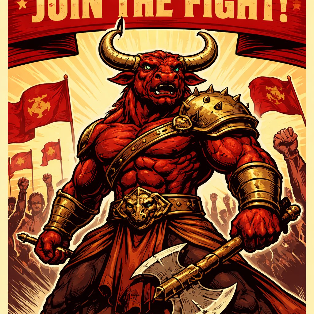 A male medium brown Minotaur with brown eyes that has a well~proportioned figure that works at freak show as the ringmaster. That has abilities of Reality Rejection, Time Manipulation (Chronokineses), Zoolingualism (Language of Cattle only), Human Speech. He’s basically a hybrid with his mother being a human with half-animal (Cretan Cattle) physiology and his father a Cretan Bull.