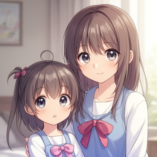 woman and her 9 year old daughter, looking sad, in the style of a manwa full color