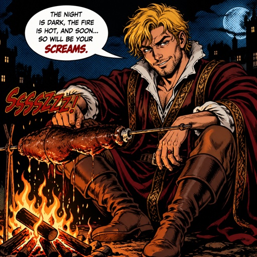 No caricatures no speech bubbles a slim tall young man mid 20s blonde curly hair wearing an expensive renaissance robe i...