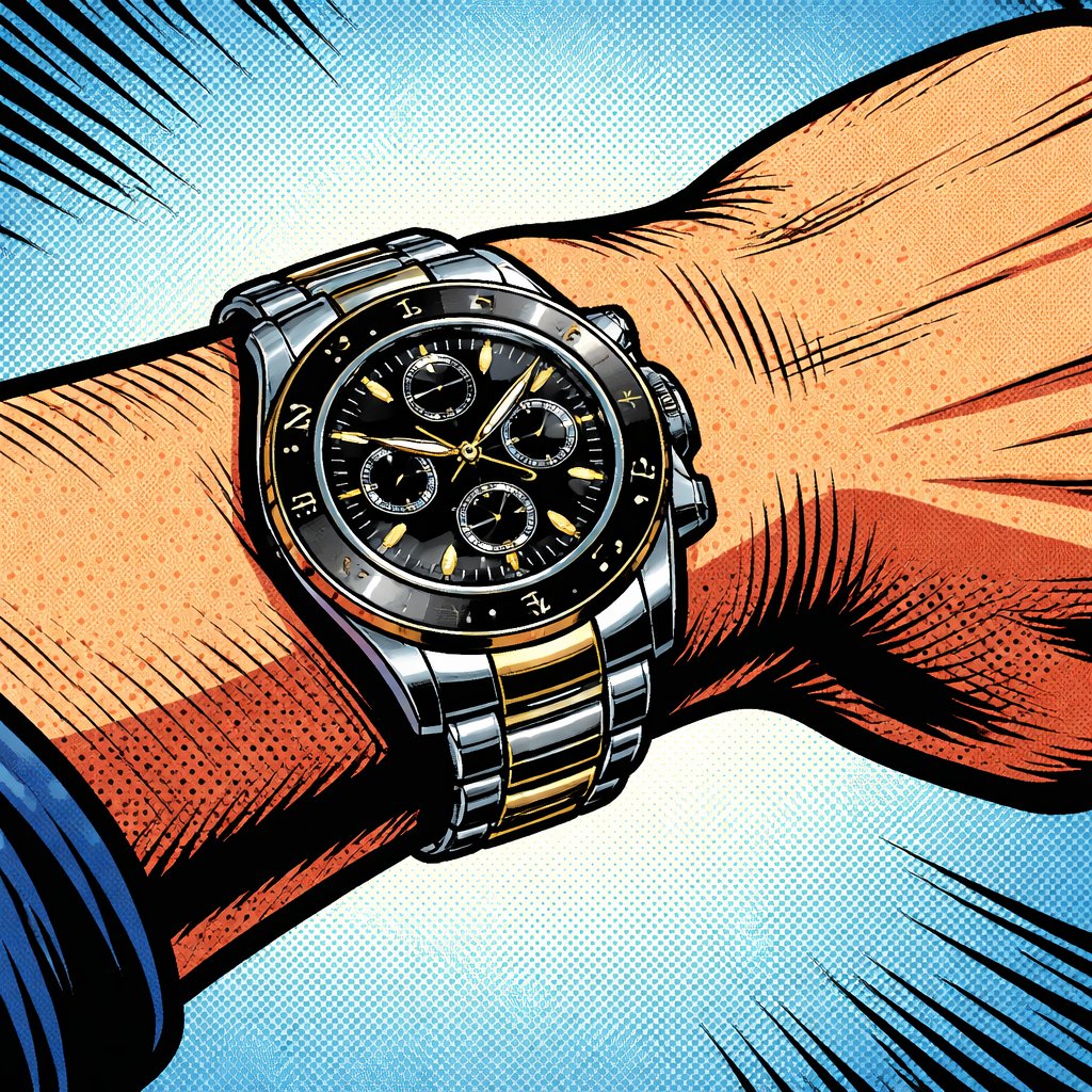 No speech bubbles no caricature a right arm with an expensive gold watch on it