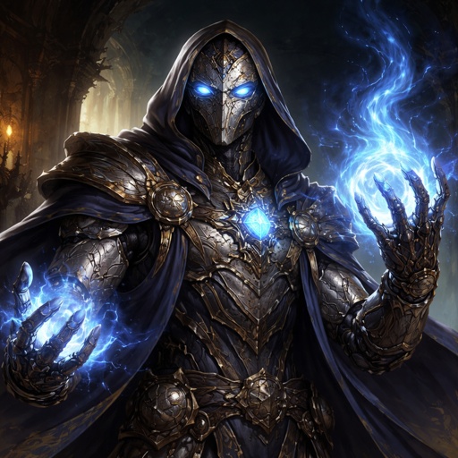 Sci-fi sorcerer, white tunic and gold armor