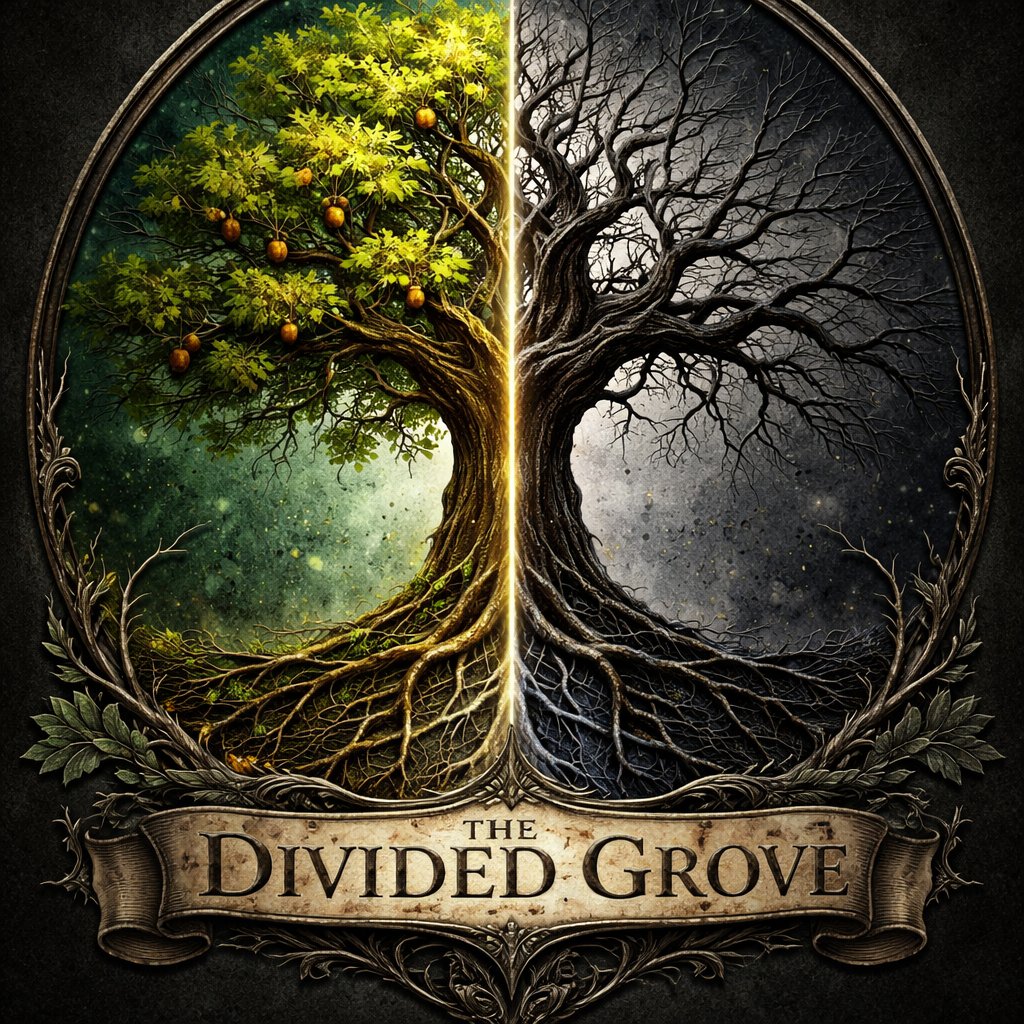 Sigil Name: The Divided Grove The sigil of House Alterwood reflects both kinship and divergence—born of the same bloodline as House Oakwell, yet shaped by a different path, harsher and more shadowed. At its center stands a single great tree split down the middle. • The left half is a living oak, lush with deep green leaves and dotted with golden acorns, clearly echoing their Oakwell heritage. Its bark is strong, its branches full—symbolizing the noble roots they share. • The right half, however, is twisted and withered, its branches bare and jagged, reaching like claws into the sky. The wood appears darker, almost blackened, as if touched by fire, rot, or some ancient curse. The roots beneath the tree intertwine, not divided but entangled as one, showing that despite their differences, the bloodline remains unbroken. Some roots appear healthy and thick, while others are thin and cracked—representing the contrast between legacy and transformation. The background field is often split subtly: • A deep forest green behind the living half • A dark ash-grey or muted black behind the withered side A faint silver line or fracture may run vertically through the shield, marking the moment their house diverged from Oakwell—whether by choice, betrayal, or necessity. Color symbolism: • Green & Gold (Oakwell side): heritage, honor, and life • Black / Grey (Alterwood side): adaptation, hardship, and shadow • Silver divide: fate, separation, and dual identity House Words (optional): “From One Root, Two Fates.” or “We Endure the Other Path.” Where House Oakwell stands for stability and tradition, House Alterwood embodies change—sometimes grim, sometimes necessary. Their sigil tells a quiet but powerful story: not all branches of the same tree grow toward the same light.
